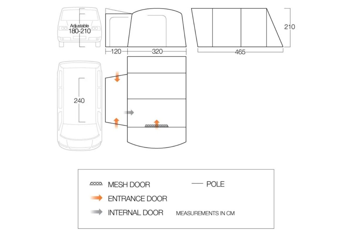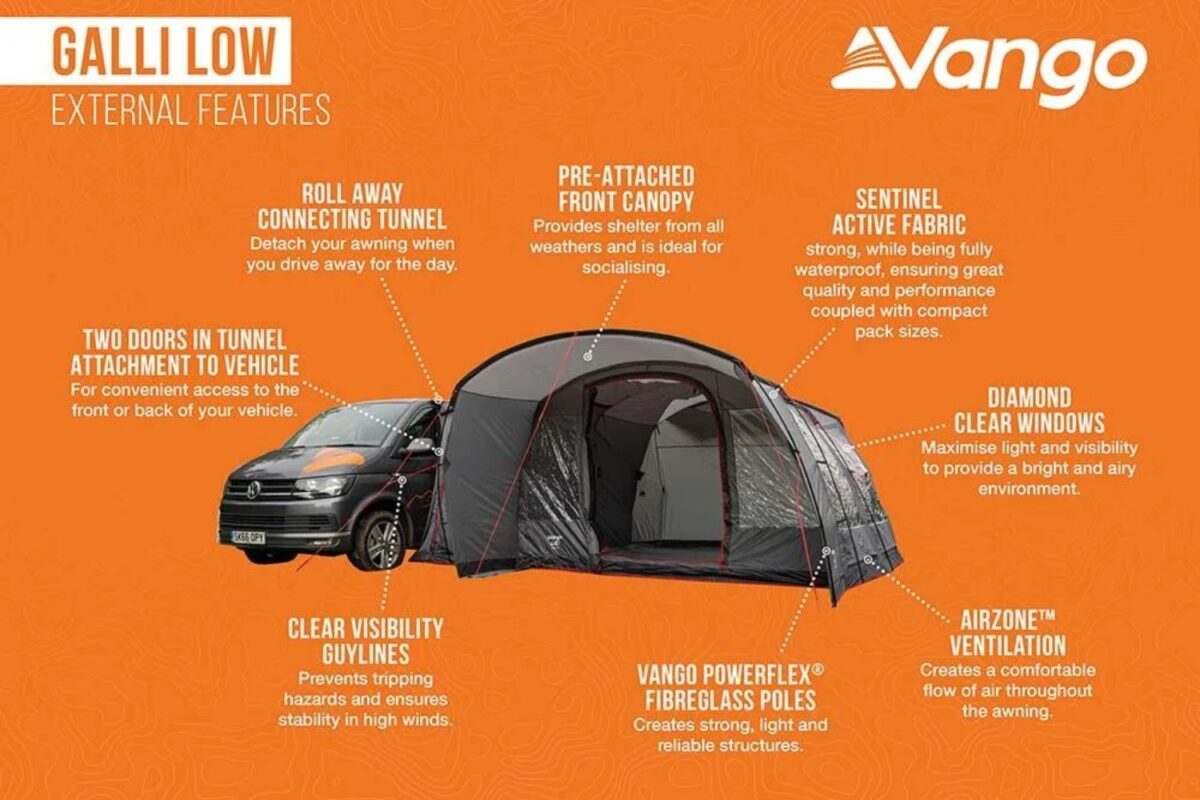 The Vango Galli poled drive away awning is ideal for anyone who wants a large and versatile space on their outdoor holiday