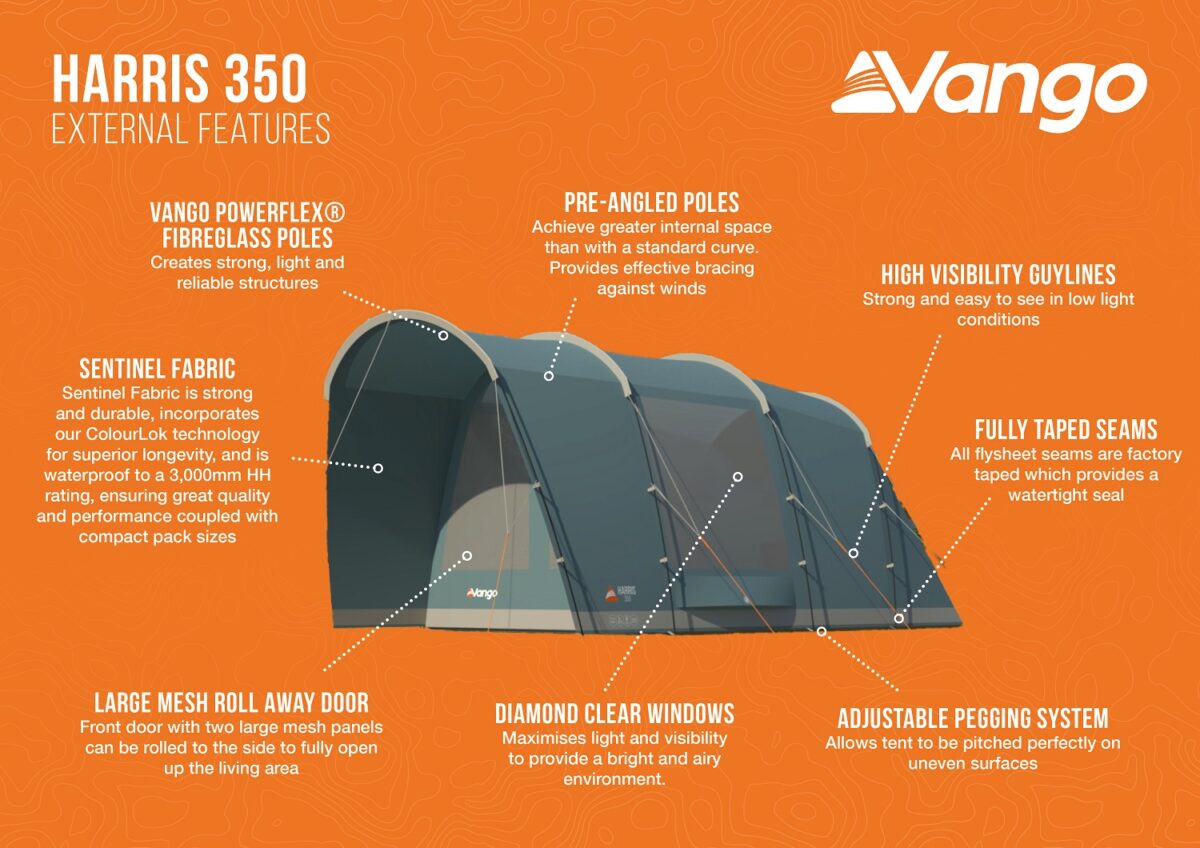 With a vast range of features the Vango Harris 350 is perfect for summertime breaks