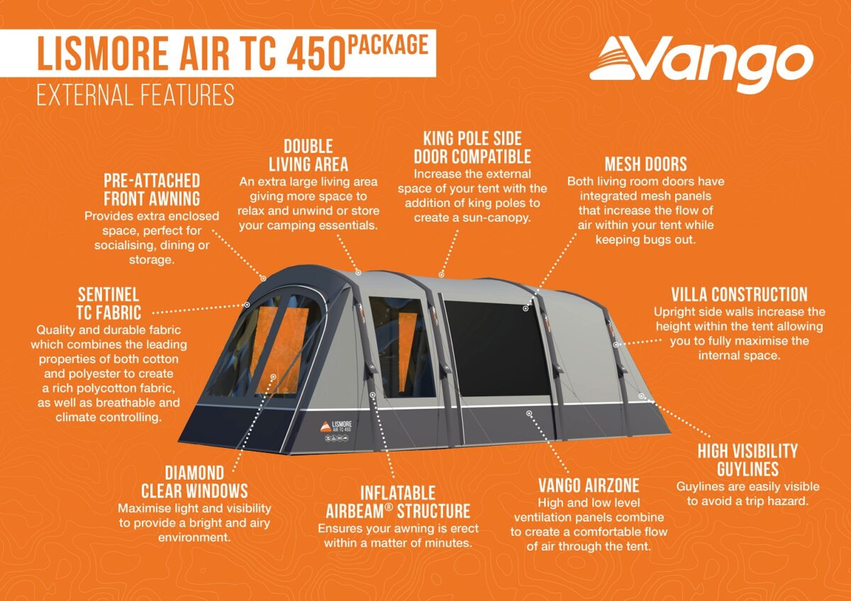 For extended summer holidays with enhanced luxury, the Vango Lismore Air TC 450 (Incl. Footoprint) is ideal