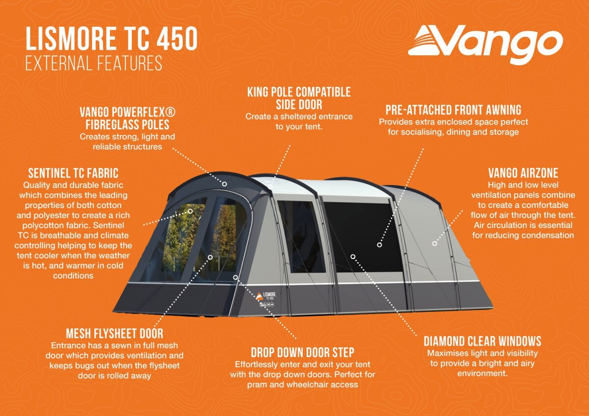 The Vango Lismore TC 450 Poled Tent 2023 (Incl. Footprint) is perfect for long summer breaks with added luxury