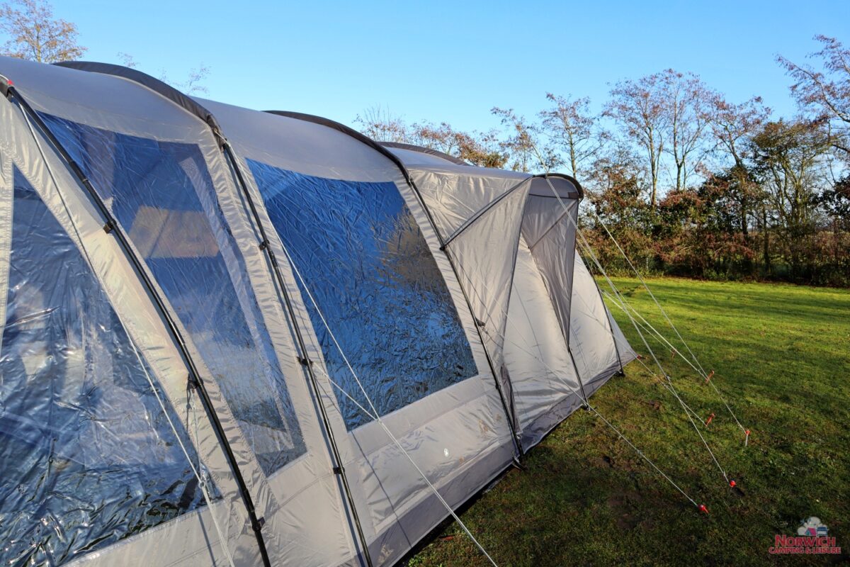 Included in the design of the Orava is a sizable front extension that offers a tonne of flexibility and living space. In addition, the living area features a sewn-in groundsheet, full standing height, and a side door access. Meanwhile, the two inner bedrooms can be divided into three bedrooms using the optional toggled dividers. The ideal tent for a growing family or group because you may modify it to suit your needs.