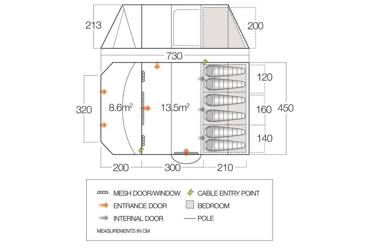 The Orava II 650XL 6-berth tent is everything you need for those long camping holidays with the family. It’s array of excellent features make this one of Vango’s best-selling tents. It’s an extremely spacious tent with a 5-fibreglass-pole tunnel structure and fully flexible built-in front awning – perfect for all of your camping essentials. It has an extra-large living area and features Vango’s Patented TBS II® system to ensure the tent performs in adverse weather conditions. This tent is ideal for larger families or those seeking extra room.