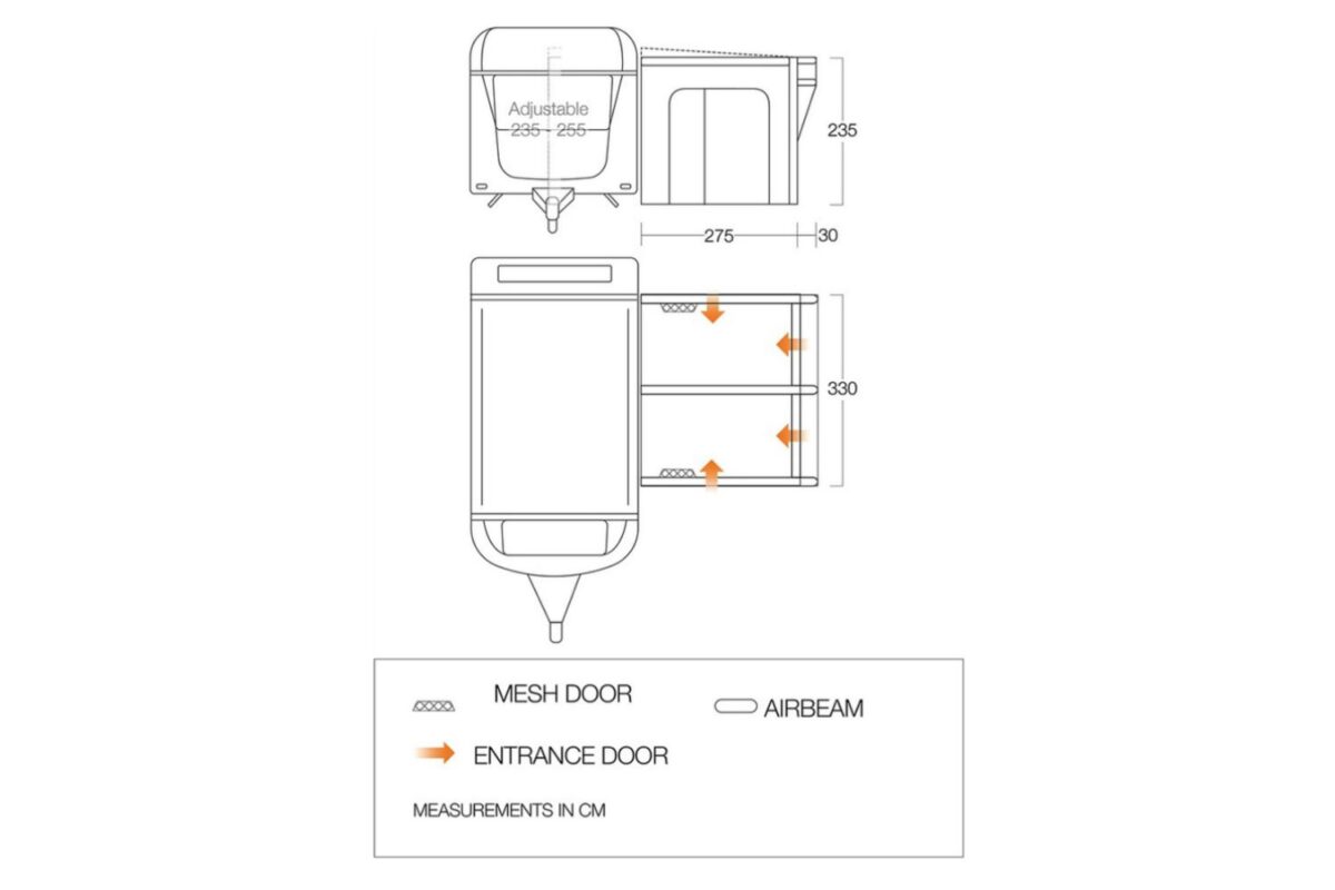 Optional Mesh Door Pack Available – Mesh doors to increase the flow of air within your awning while keeping bugs out