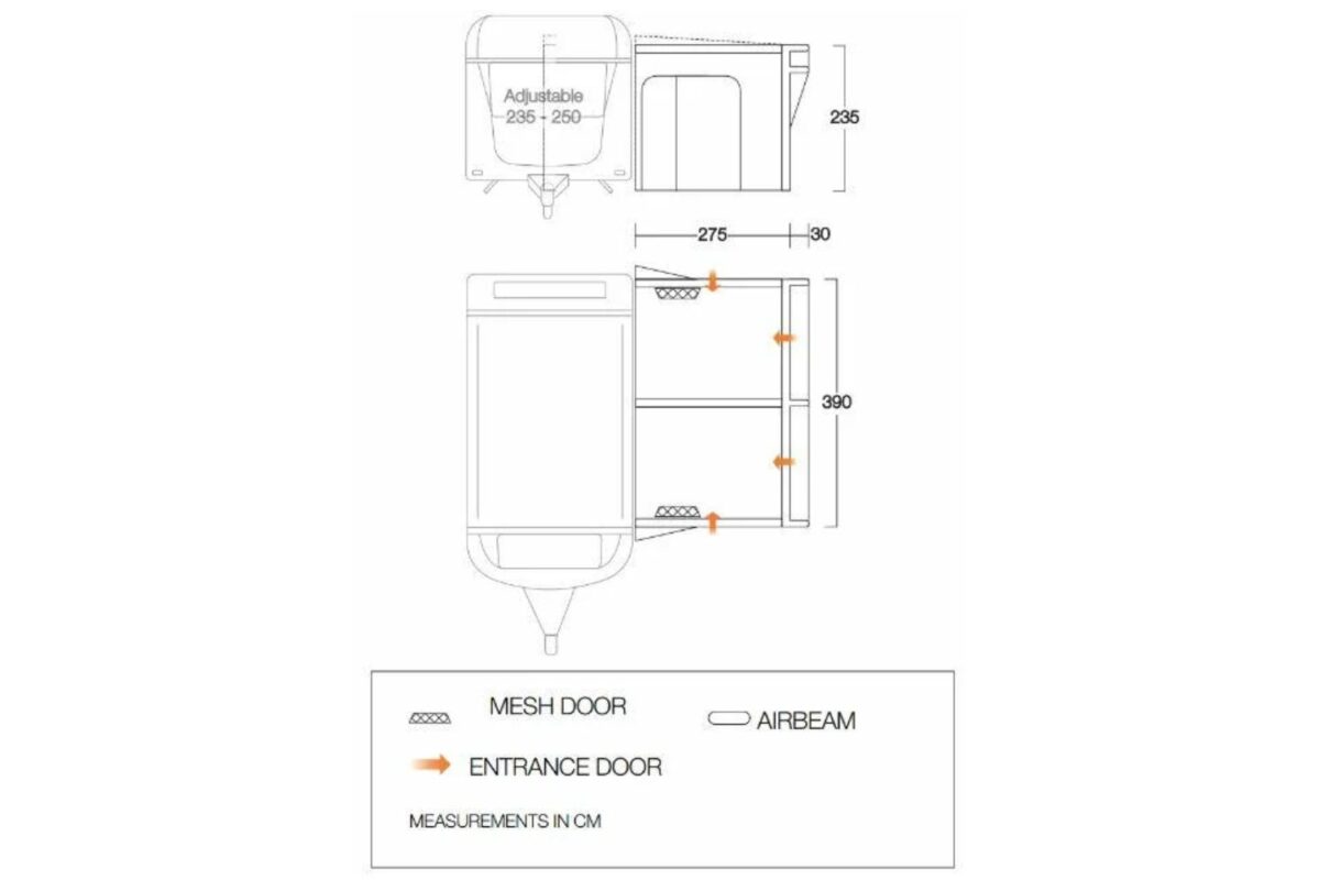Optional Mesh Door Pack Available – Mesh doors to increase the flow of air within your awning while keeping bugs out