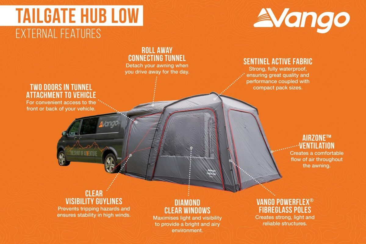 The Vango Tailgate Hub Low Drive-Away Awning 2024 is the brand’s first rear attachment awning