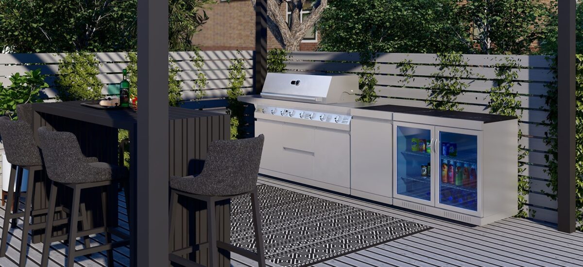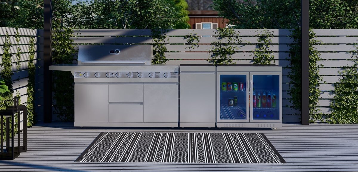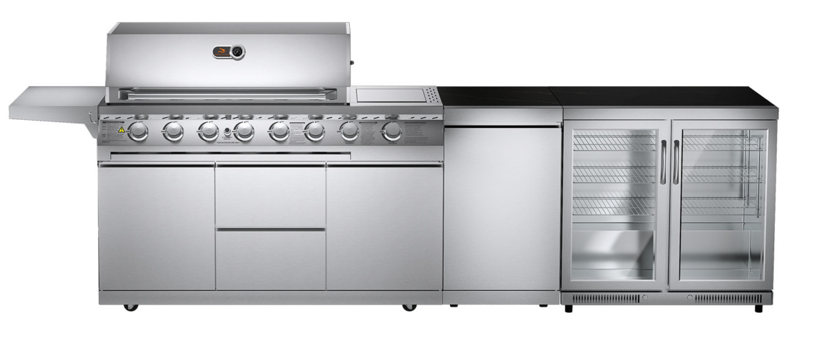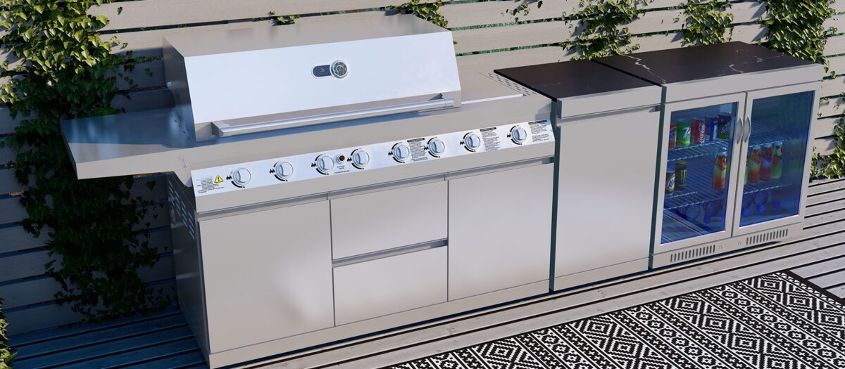 Whistler The Blockley 6-Burner Outdoor Kitchen, creates your dream outdoor kitchen area with its stainless steel modular system. This combination comes with a stylish BBQ and outdoor fridge to bring your home cooking outside. This small outdoor kitchen is designed for those smaller spaces and home gardens.