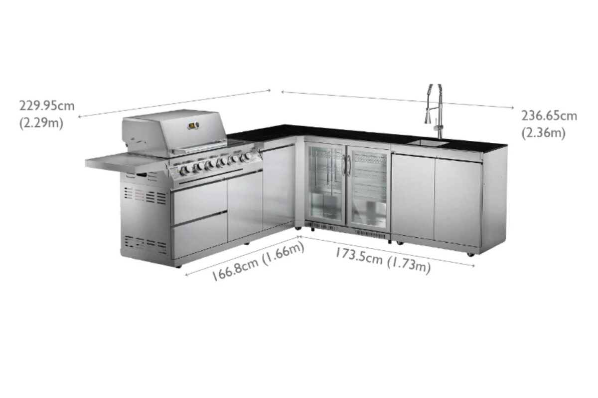 What is so great about this modular kitchen is that you can change the layout – each section can be moved to make your own design. Please note that you do need to keep your gas bottle on the right hand side of the BBQ and your fridge should never be placed next to the BBQ.