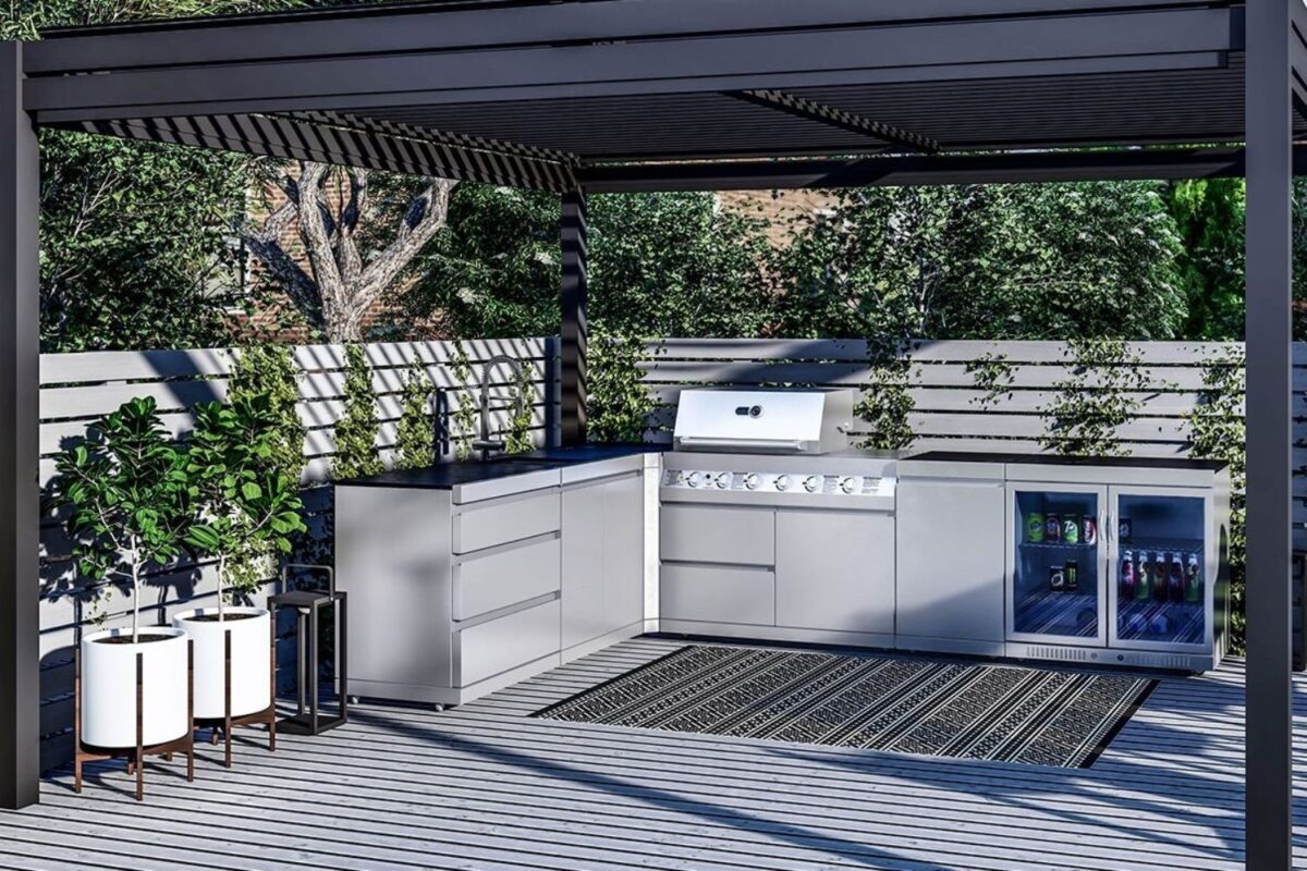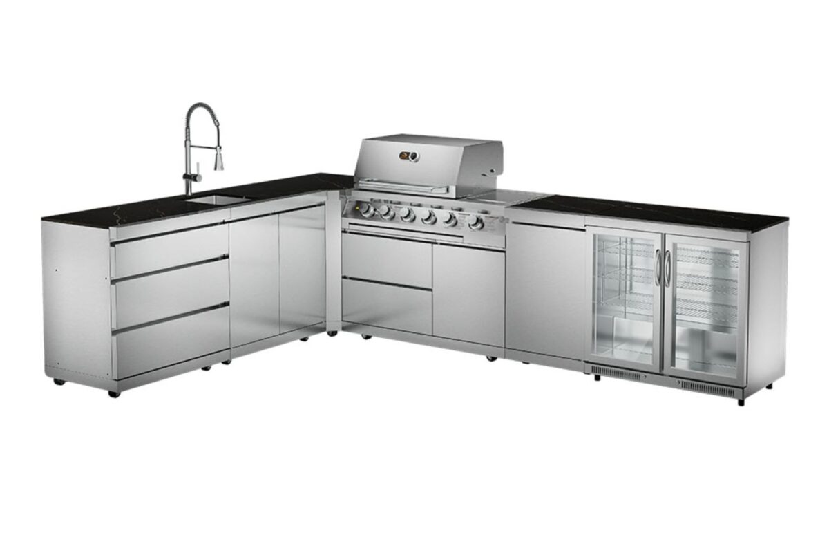 You can really turn up the heat with the Whistler The Stroud 4-Burner Outdoor Kitchen, take grilling to the next level and letting you cook with precision. What is so great about this modular kitchen is that you can change the layout – each section can be moved to make your own design. Please note you do need to keep your gas bottle on the right-hand side of the BBQ and your fridge should never be placed next to the BBQ.