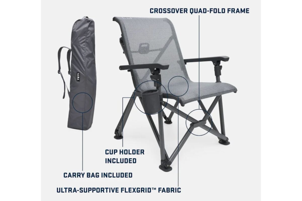 Once you’ve conquered a killer trail, you’ve earned an even better break. The YETI Trailhead® Camp Chair is a best-in-class seat designed for legendary durability and hardcore comfort. Included carry bag makes it easy to take your chair on the trail. And ultra-supportive FlexGrid™ Fabric makes for a comfortable landing. You and your seat are going places.