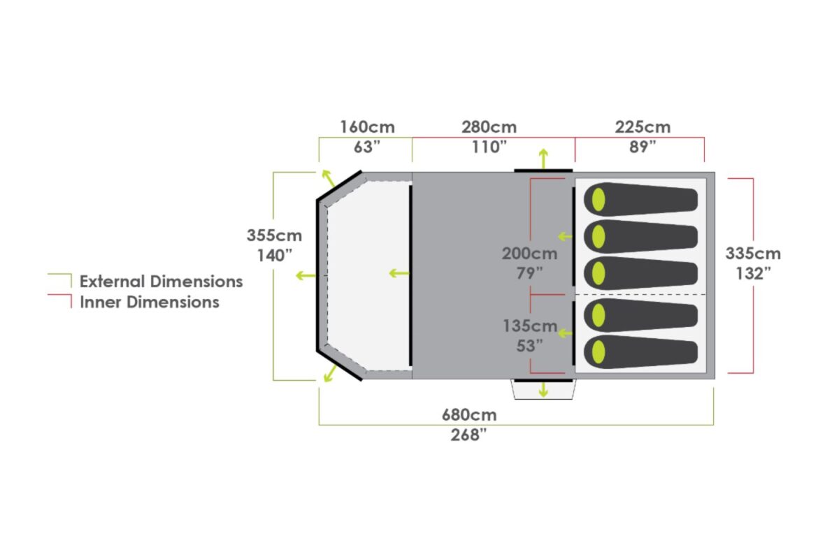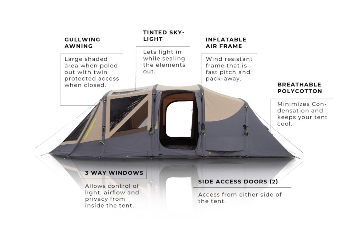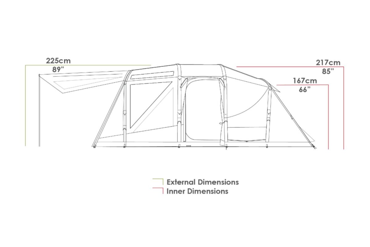 • Single-Point Inflation – Allows the entire tent, including the awning, to be inflated from one point speeding up the process and increasing stability.
