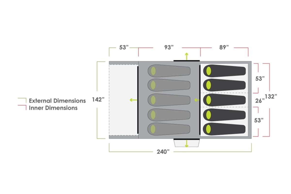 - Added Tinted PVC Skylight – tinted PVC window panels create a feeling of space inside the tent while maintaining privacy and weather protection