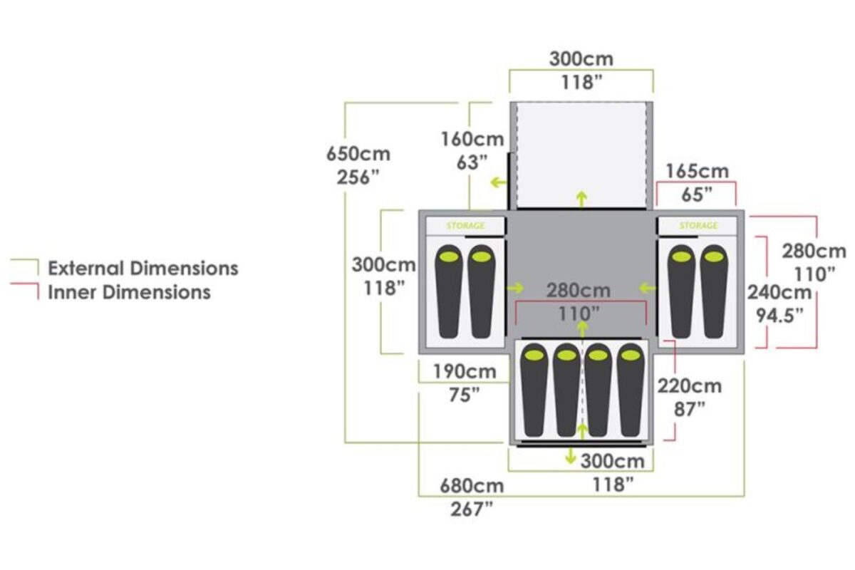 The three-sleeping pod design gives the ultimate privacy for sleeping. The kids can have their own rooms & a larger than normal master bedroom includes its own entrance which means that there are less zips to undo when going to sleep late at night. The new colour helps to make the living space a brighter place to be and with the open front, you can feel like you are bringing the outside in. If you are still looking for that enclosed space, then you can add on the new Pro Awning Wall Set which simply zips on to the tent and includes not only a waterproof door with tinted windows but also a complete mesh wall as well. This wall set can still be gull-winged out like a canopy to provide additional protection against the elements.
