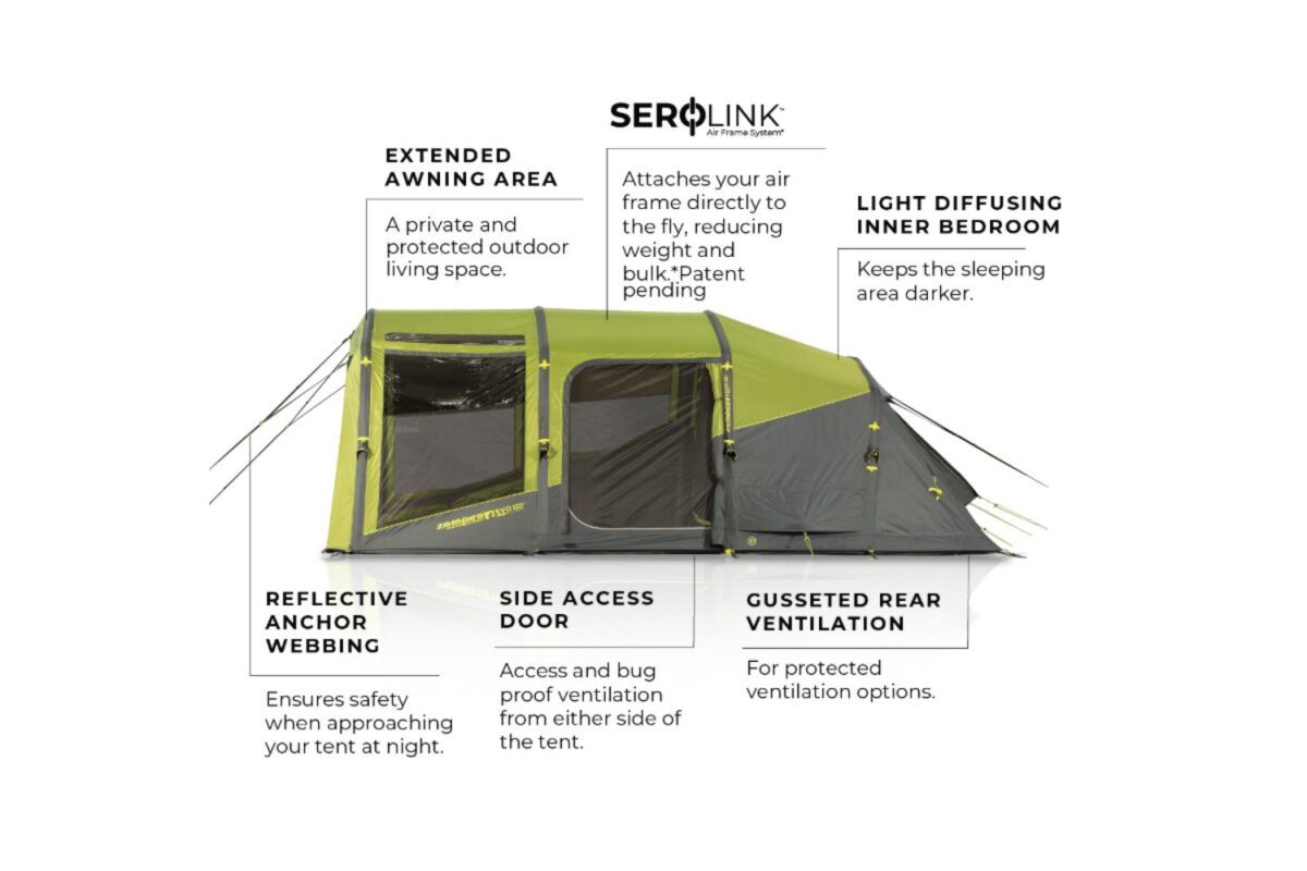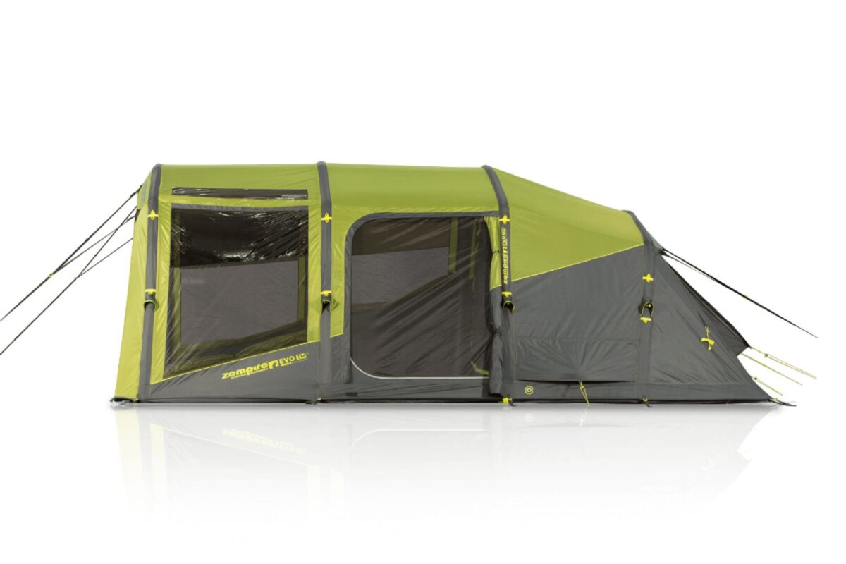 The large front awning area, PVC skylights and excellent ventilation add up to make the Evo TM V2 Zempir’s latest and greatest mid-range tents for couples or small families. A light-diffusing bedroom fabric ensures uninterrupted sleep on lazy mornings and the angled-beam construction offers improved wind stability and headspace throughout the tent.